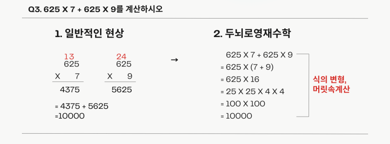 이 프로그램을 통해 학생들은 문제를 단순히 계산하는 것이 아니라, 수의 성질을 파악하고 논리적으로 문제를 해결하는 습관을 기르게 됩니다. 예를 들어, 일반적인 학생들이 곱셈구구를 활용하여 차례대로 계산하는 반면, 두뇌로 영재수학 학생들은 수의 성질을 정확히 파악하여 보다 효율적이고 창의적인 방법으로 문제를 해결합니다. 두뇌로 영재수학 학생들은 학습 성취감과 창의력 향상을 동시에 경험하며, 이를 통해 수학에 대한 자신감을 높이고 학업 성과도 향상할 수 있습니다.