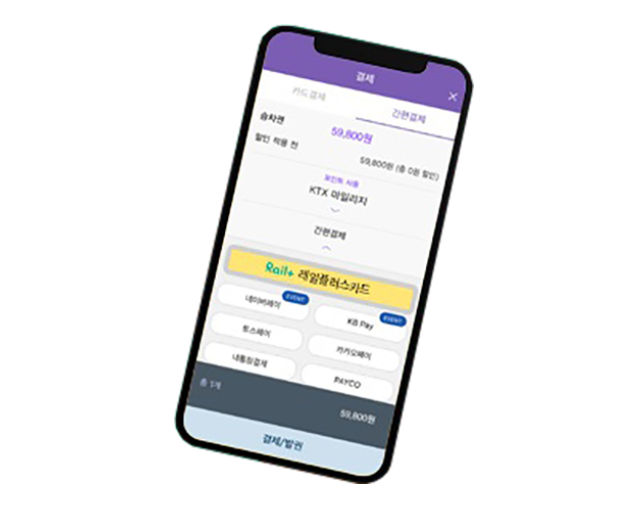 - 1회 최대 결제 금액(10만 원) 초과 시 한도 복원 이후 추가 결제가 가능합니다. (레일플러스앱-메뉴[더 보기]-[한도복원])