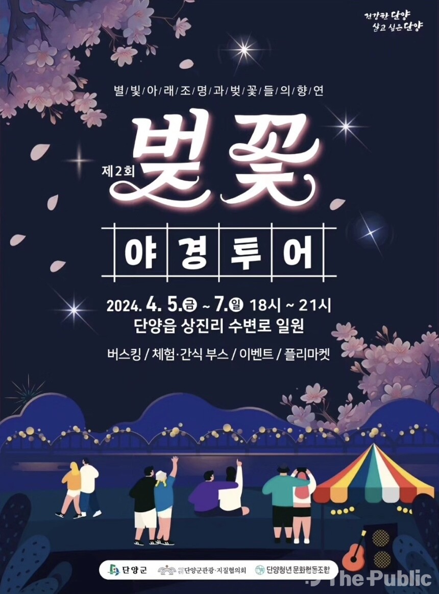 단양군의 벚꽃 야경 투어는 방문객들에게 낮과는 다른 매력적인 야간 벚꽃 경치를 선사합니다. 조명 아래에서 더욱 빛나는 벚꽃들은 낭만적인 분위기를 자아내며, 연인들의 손을 잡고 거닐기에 이상적인 장소가 됩니다. 또한, 야간에도 안전하게 즐길 수 있도록 축제 기간 동안에는 보안과 안전 관리에도 만전을 기합니다.