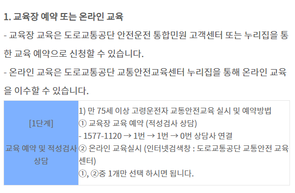 | 75세 이상 면허갱신 대상자 의무교육대상 및 교육내용 (0) | 2024.05.12 |